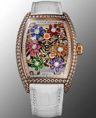 Frank Muller’s Cintrée Curvex Cut Flower captures the fleeting perfection of a bloom, translating it into a high jewellery timepiece where fine watchmaking meets gem-setting artistry. Its 31 × 43 mm rose gold case frames an openwork dial, where gears, bridges, and springs form a mechanical bouquet alive with motion. Diamond flowers, sculpted with the Curvex Cut technique, shimmer with organic depth as light dances across each facet. At its heart, the in-house MVT FM 1540-CS1—crafted from 153 components—ensures precision. Both ephemeral and eternal, this creation reflects beauty preserved at its peak, a radiant union of horology and art.
